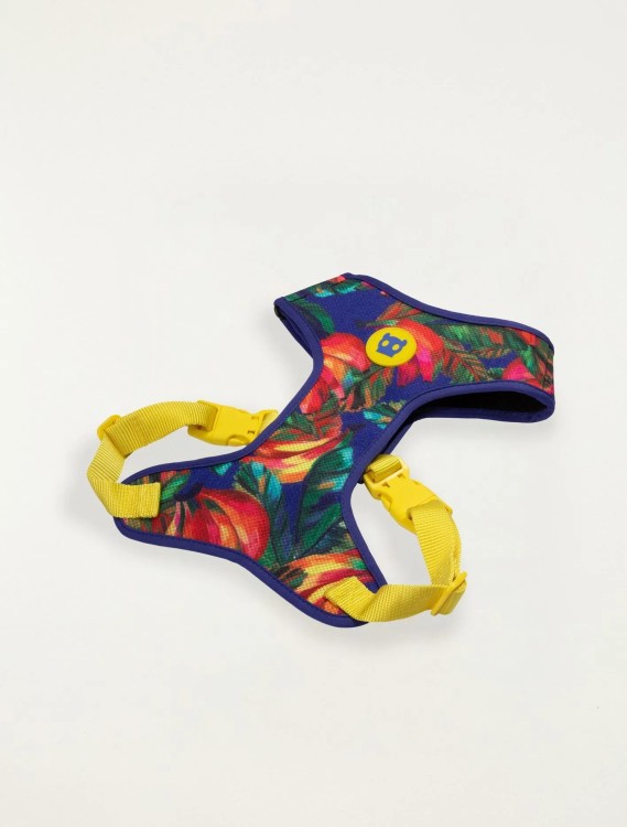 O peitoral air mesh ajustável para cachorros samba é mais um lançamento exclusivo da colaboração entre a farm rio e zee.dog. o peitoral conta com estampas icônicas da farm. além disso, o peitoral não esquenta pois possui trama aerada que permite a passagem de ar, refrescando a pele e o pelo do cachorro. é regulável tanto na barriga quanto no pescoço e possui anel para prender a guia na parte das costas. é recomendado evitar contato com superfícies ásperas ou cortantes. Medidas: Circunferência do pescoço:Aprox. 35cm-40cm   Circunferência da Barriga: 52cn-62cm