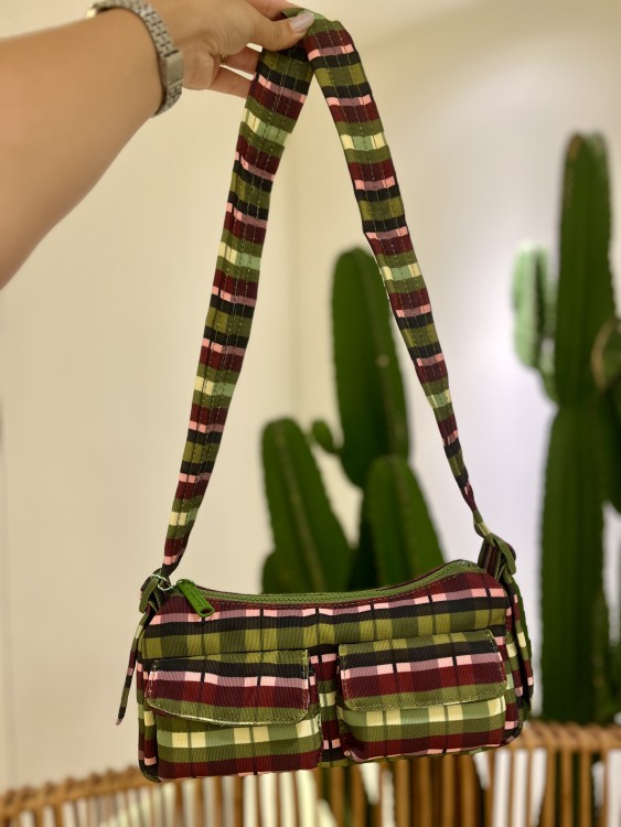 bolsa baquete xadrez multicolorido