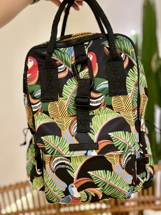 mochila etc tucanos com folhagem