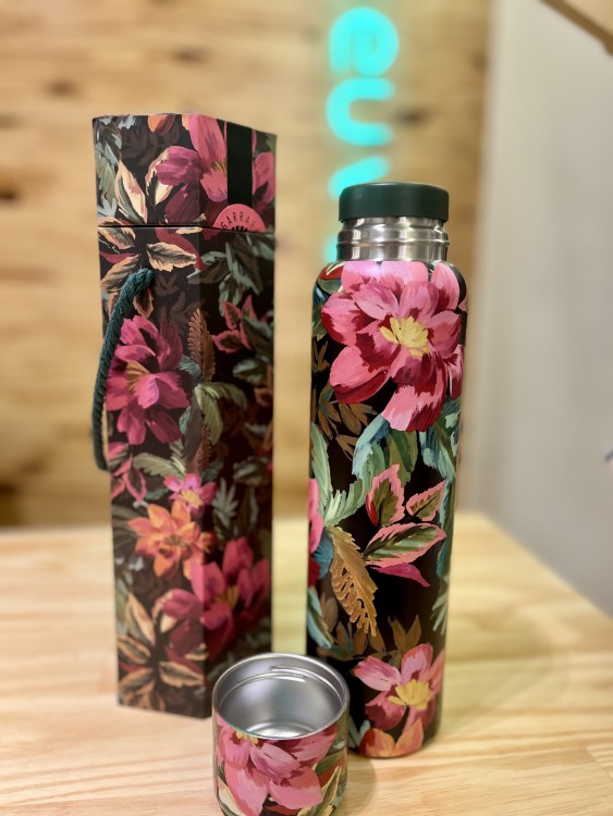 garrafa termica de café painted flowers