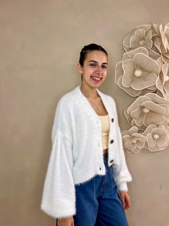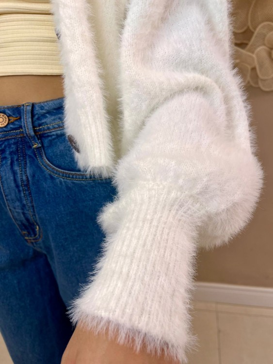 cardigan curto pelinho off white