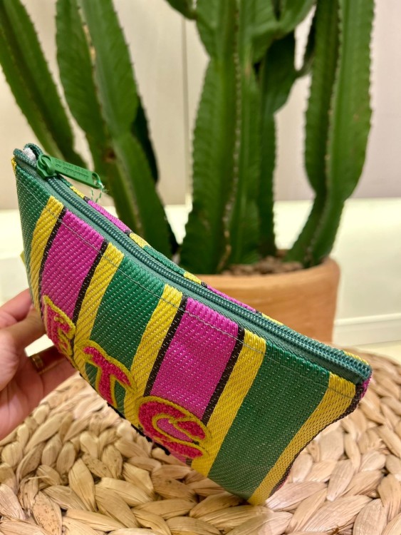 necessaire flat rafia multicolorido